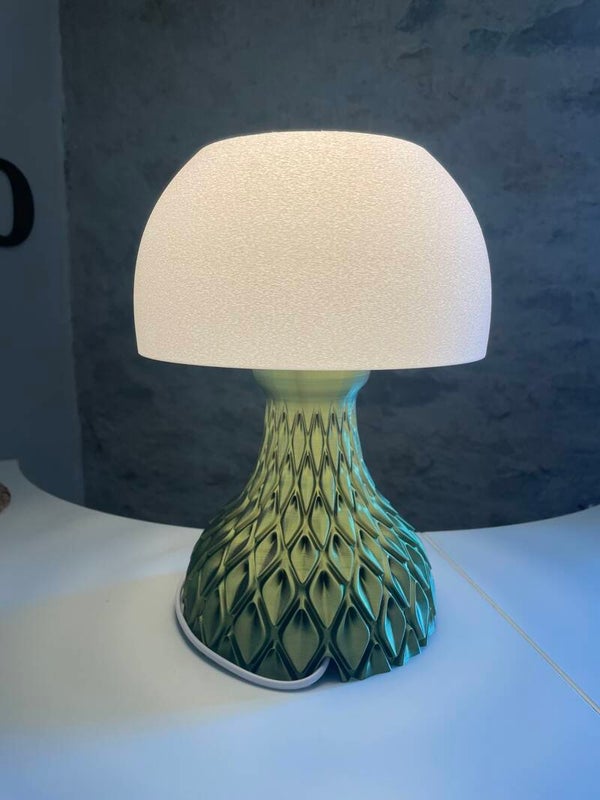 La lampe Petal s’inspire des formes naturelles d’un pétale pour créer une pièce à la fois organique et contemporaine. Son pied texturé en dégradé vert et noir métallisé capte la lumière et joue avec les reflets, tandis que son abat-jour blanc diffuse une lueur douce et apaisante.