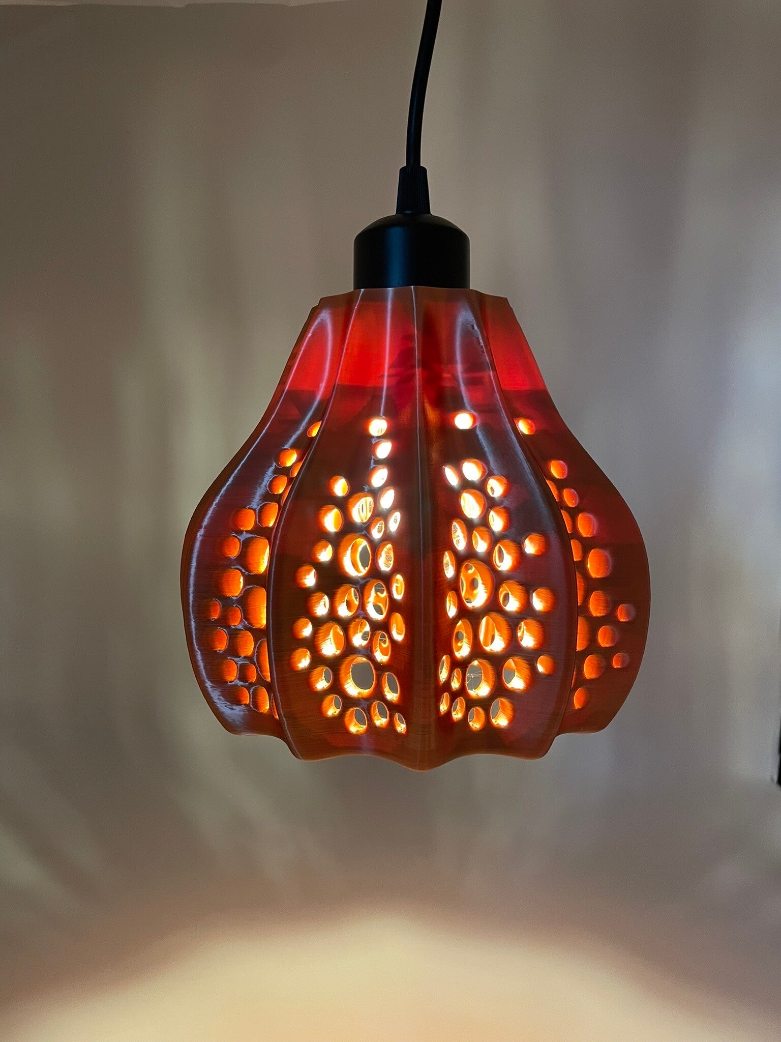 Son design ajouré, parsemé de motifs circulaires, diffuse une lumière vibrante qui projette des ombres captivantes sur les murs ✨.