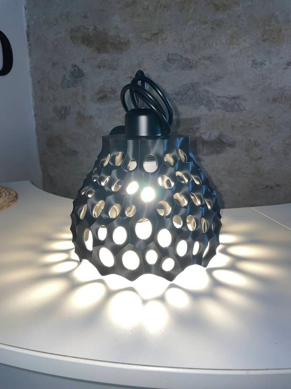 Suspension moderne au design ajouré, idéale pour apporter une touche contemporaine et graphique à votre intérieur.