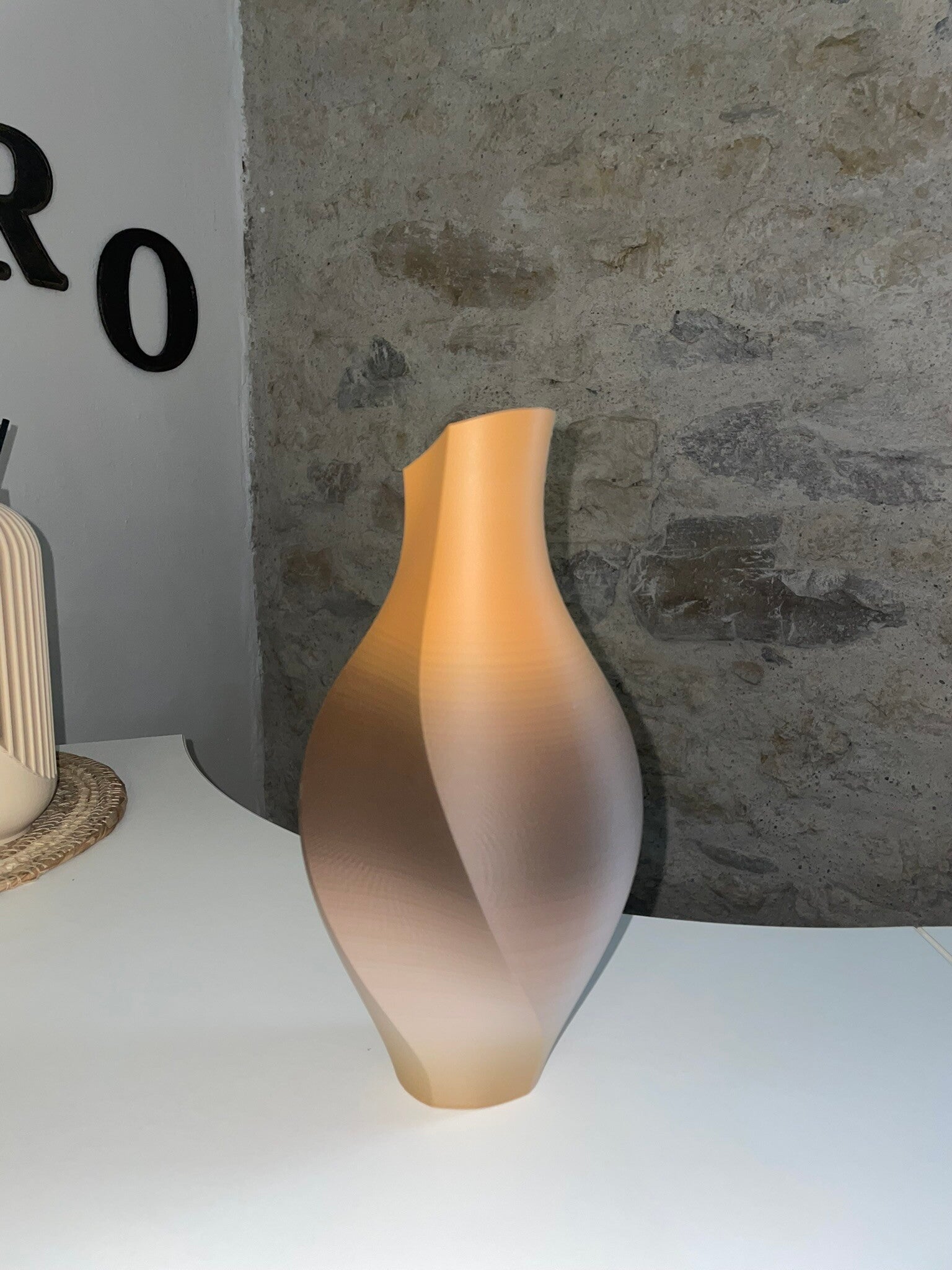 Ses courbes fluides et son dégradé beige à brun clair rappellent les teintes du sable et du bois, apportant une touche de sérénité à ton intérieur.